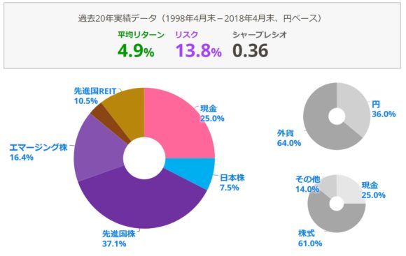 期待リターン、リスク、シャープレシオの算出については、「わたしのインデックス」を使わせて頂いています。